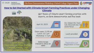 We are organizing workshops, field days, outreach and community engagement activities on climate smart and regenerative agricultural practices in GA through this USDA project from the Beginning Farmer and Rancher Development Program. We are partnering with colleagues from North Carolina Agricultural and Technical State University (Biswanath Dari, Osei Yeboah and team) to train beginning farmers and ranchers on climate-smart agriculture innovations, soil and water management practices, specialty crop production, agricultural entrepreneurship, digital technologies, and direct marketing strategies.